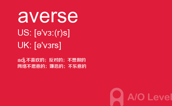 a-level课程证书被几乎所有英语授课的大学作为招收新生的入学标准。 在中国开设a-level课程旨在为中国学生提供进入国外大学的有效途径,具体目标为:培养在国内初高中成绩优秀的学生进入世界顶尖大学;培养在国内初高中成绩中等的学生进入世界一流大学;培养在国内初高中成绩一般的学生考取适合自己的大学。今天alevel考试网小编给大家详细解析a-level考试单词averse。如果您想了解新加坡a水准学费,南京alevel,爱德思alevel真题,alevel经济学等关于a-level考试的相关资讯,请继续浏览并关注课窝a/o-level考试网。