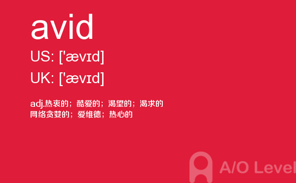 a-level(general certificate of education advanced level ),英国高中课程,是英国全民课程体系,是英国普通中等教育证书考试高级水平课程,也是英国学生的大学入学考试课程。今天alevel考试网小编给大家带来的alevel考试单词avid的详细介绍。希望大家能够认真的阅读。如果您想了解新加坡a水准难度,alevel化学还原氧化知识点,爱德思alevel申请大学,悉尼大学alevel要求等关于a-level考试的相关资讯,请继续浏览并关注课窝a/o-level考试网。