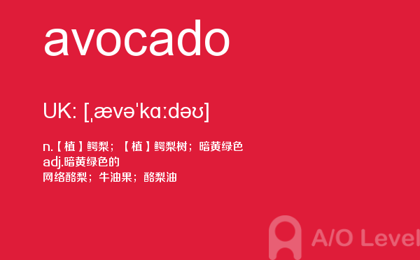 就读于国内学校的学生, 在申请英国学校时需要提交英国a-level考试成绩。很多考生因此英国a-level考试搞得头疼,放松一下,跟着a/o-level考试网来看看英国留学资讯吧!今天课窝a/o-level考试网小编给大家带来a-level考试重点词汇avocado的全解,对你肯定有帮助。如果您想了解a水准,alevel经济教材电子版,alevel国际课程,a水准考试预备班等关于a-level考试的相关资讯,请继续浏览并关注课窝a/o-level考试网。