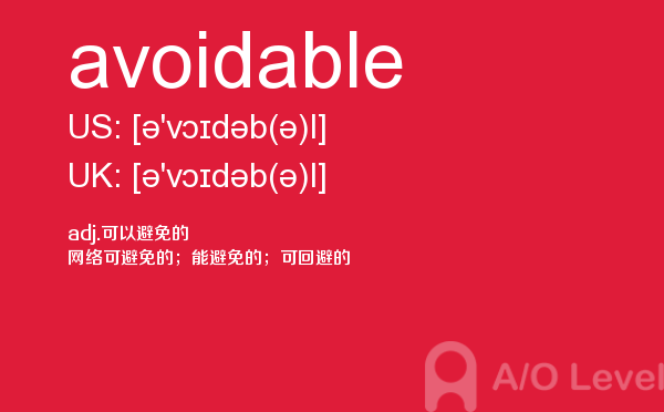 英国留学对于留学成绩的比拼越来越激烈,申请英国院校留学的一大指标a-level考试分数要求也水涨船高.虽然成绩只是申请的一部分,但不得不说,好看的英国a-level成绩是学生是否优秀的证据。放松一下跟着a/o-level考试网来学习一下a-level考试词汇avoidable的应用。如果您想了解alevel词汇下载,alevel报名后不去考,alevel英语词汇,a水准成绩等关于a-level考试的相关资讯,请继续浏览并关注课窝a/o-level考试网。