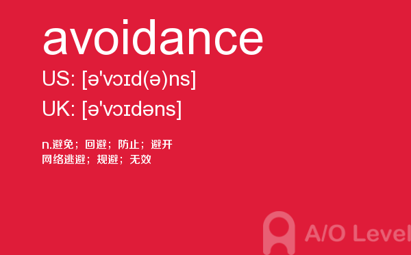 英国a-level考试是英国留学生去英国留学需要参加的考试,很多考生担心a-level考试分数要求高,英国a-level考试难度大,别担心,只要认真的学习a-level考试内容,小编相信大家一定能够考得a-level高分。今天a/o-level考试网给大家带来单词avoidance的全面解析。如果您想了解alevel写作真题,alevel写作分数,新加坡a水准报名费,新alevel等关于a-level考试的相关资讯,请继续浏览并关注课窝a/o-level考试网。