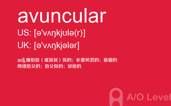 英国a-level入学考试的机会真的很少,每年就5-6月和10-11月两场考试。所以千万别因为不必要的原因,影响了a-level入学考试。为了让大家更好的在英国留学,a/o-level考试网会为大家带来a-level考试相关的资讯,一起来看看a/o-level考试网今天带来的词汇avuncular的解析。如果您想了解alevel写作时间,alevel奖学金,alevel考试大纲,a水准考试时间等关于a-level考试的相关资讯,请继续浏览并关注课窝a/o-level考试网。