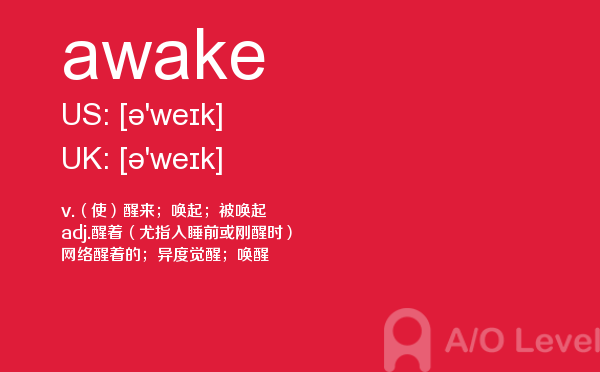 a-level课程证书被几乎所有英语授课的大学作为招收新生的入学标准。 在中国开设a-level课程旨在为中国学生提供进入国外大学的有效途径,具体目标为:培养在国内初高中成绩优秀的学生进入世界顶尖大学;培养在国内初高中成绩中等的学生进入世界一流大学;培养在国内初高中成绩一般的学生考取适合自己的大学。今天alevel考试网小编给大家详细解析a-level考试单词awake。如果您想了解alevel数学,alevel分数,alevel培训中心,alevel申请香港大学等关于a-level考试的相关资讯,请继续浏览并关注课窝a/o-level考试网。