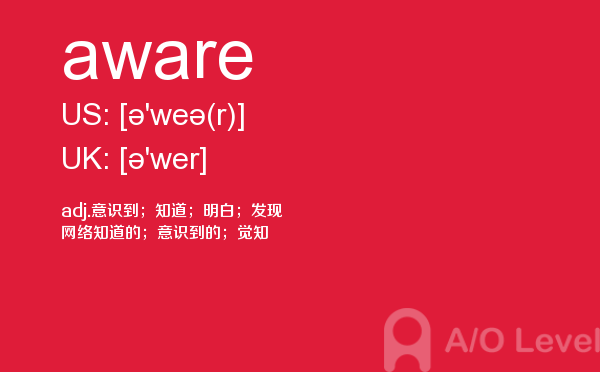 英国、加拿大、爱尔兰、澳大利亚、新西兰、新加坡等英语国家没有统一的大学入学标准,虽然它们都认可a-level证书,但是各所大学、各个专业对学生学过哪几门a-level课程以及成绩都有不同的要求。所以怎样选择课程并没有一个唯一的答案。对于如何选课的问题要根据具体情况而定。这些在你的a-level考试中都不是重要的,重要的是a-level成绩,a-level成绩取决于a-level词汇量,那么今天小编给大家带来a-level考试重点词汇aware的全面解析。如果您想了解alevel是什么,alevel面试,alevel去哪考试在中国,alevel成绩等关于a-level考试的相关资讯,请继续浏览并关注课窝a/o-level考试网。