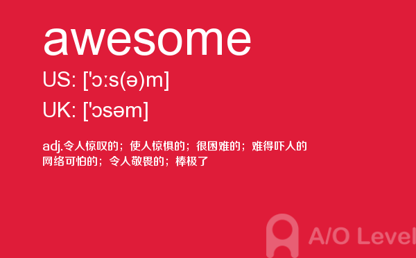 今天课窝a/o-level考试网小编给大家带来alevel考试至关重要的内容a-level单词awesome的详细介绍。希望大家能够认真的阅读,在备考a-level中会用到,关于a-level考试时间,alevel考试费用等相关问题,可以关注课窝a/o-level考试网。如果您想了解alevel双语教材,英国alevel课程是什么,alevel课程物理总结,alevel考试成绩查询等关于a-level考试的相关资讯,请继续浏览并关注课窝a/o-level考试网。