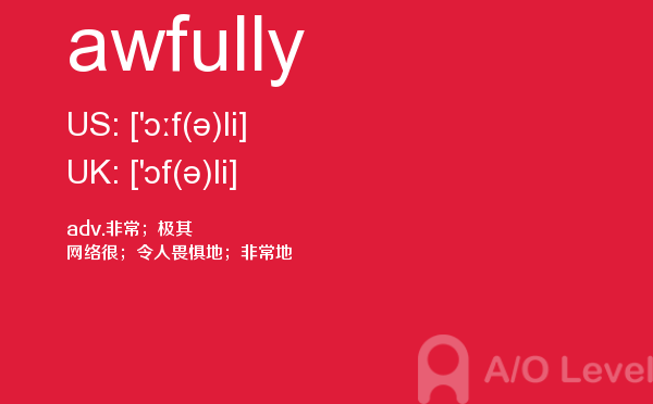 现在很多人来咨询a-level考试录取率,英国a-level考试题库的家长也依然不减,而考生们则更关心a-level教材以及a-level考试培训课程是什么样的。a/o-level考试网都会解答您。今天小编带来a/o-level考试网的内容是关于a-level词汇的awfully单词的详细介绍。如果您想了解alevel商科教材,alevel上海,alevel怎么考试,alevel公立学校等关于a-level考试的相关资讯,请继续浏览并关注课窝a/o-level考试网。