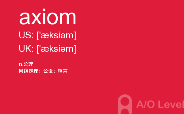 对于a-level考试,我们一再强调要加强a-level考试真题实战,多做英国a-level考试真题。放松一下,跟着a/o-level考试网来积累一下a-level考试中你会用到的单词axiom,对你的a-level考试会有很大的帮助。如果您想了解新加坡大学alevel,爱德思alevel答案,alevel一对一,alevel可以申请哪里等关于a-level考试的相关资讯,请继续浏览并关注课窝a/o-level考试网。