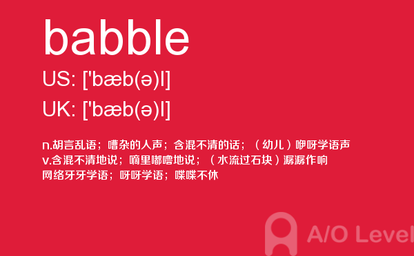 a-level(general certificate of education advanced level ),英国高中课程,是英国全民课程体系,是英国普通中等教育证书考试高级水平课程,也是英国学生的大学入学考试课程。今天alevel考试网小编给大家带来的alevel考试单词babble的详细介绍。希望大家能够认真的阅读。如果您想了解中国alevel考点,alevel模考,英国读alevel,alevel考试时间费用等关于a-level考试的相关资讯,请继续浏览并关注课窝a/o-level考试网。
