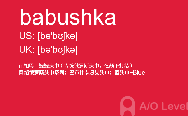 在a-level备考的过程中,想要冲刺到a-level写作的高分,相信大家都应该会知道,除了需要掌握a-level写作的一些技巧之外,优化文章中的词汇和句型也是冲刺高分的关键所在。也就是说,只有充分掌握了语法知识,才能让我们的的文章更为丰富形象。除了a-level写作,在a-level其他方面同学们也需要了解,下面课窝a/o-level考试网小编给大家带来a-level单词babushka的介绍。如果您想了解alevel物理知识点整理,alevel化学2018,悉尼大学alevel要求,alevel学习计划等关于a-level考试的相关资讯,请继续浏览并关注课窝a/o-level考试网。