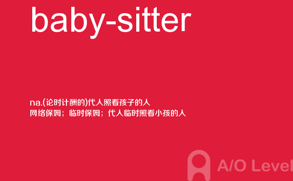 目前,a/olevel逐渐为人所熟知,很多学生都会主动了解alevel考试流程。同时也会抱怨a-level英语题比较难,任务重。那现在我们就放松一下,跟着a/o-level考试网小编来看看a-level考试中要积累的单词baby-sitter,认真的学习积累。如果您想了解a水准考试报名,alevel化学实验,上海alevel课程,alevel可以申请哪里等关于a-level考试的相关资讯,请继续浏览并关注课窝a/o-level考试网。