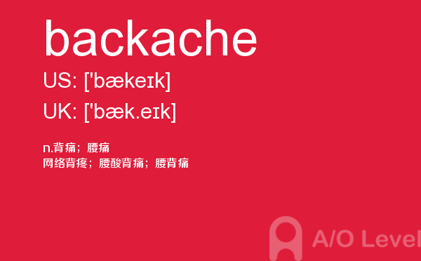 英国a-level学校,从教学质量上来看私立学校更占优势,大部分中国留学生也选择私立学校来读,不过一般都是提前一年来申请学校。中国目前也有20几所a-level学校,每年也同样有走进剑桥牛津等世界顶级大学的学生。所以在国外和在国内都可以选择a-level学校来学习。在前面关于a-level选校的问题已经详细介绍过,那么今天a/o-level考试网小编主要想介绍的是a-level重难点词汇backache。希望对大家有帮助。如果您想了解alevel影视表演学什么,alevel培训机构,alevel课程的适用范围,alevel去哪考试在中国等关于a-level考试的相关资讯,请继续浏览并关注课窝a/o-level考试网。
