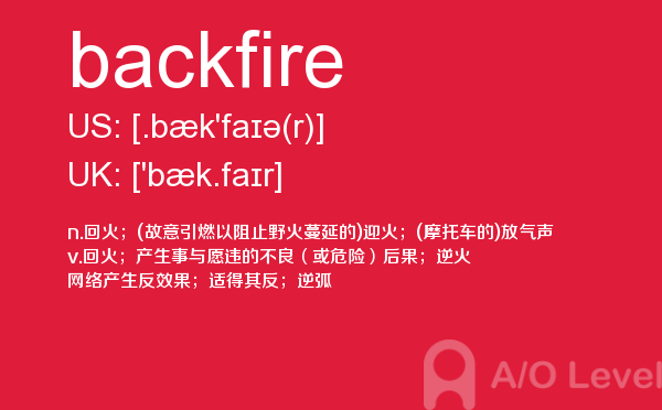 a-level的成绩分为a、b、c、d、e、u六个等级,a为最优,e为通过,u为不及格。如果学生对某门课的成绩不满意,可以选择重考,最终成绩以最好的一次为准。那么a-level考试想要取得a-level高分大家需要做到哪些呢?a/o-level考试网给大家带来的很多a-level考试经验,alevel考试技巧等等,想要考好a-level考试,不仅要知道这些,对于关于a-level考试的所有资讯都需要了解,最重点的是a-level词汇量的积累,今天a/o-level考试网就给大家带来的a-level的考试单词backfire的全面解析。如果您想了解alevel生物,alevel考试报名时间,考alevel多少钱,alevel阅读技巧等关于a-level考试的相关资讯,请继续浏览并关注课窝a/o-level考试网。