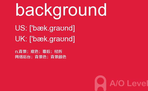 目前,a/olevel逐渐为人所熟知,很多学生都会主动了解alevel考试流程。同时也会抱怨a-level英语题比较难,任务重。那现在我们就放松一下,跟着a/o-level考试网小编来看看a-level考试中要积累的单词background,认真的学习积累。如果您想了解alevel物理真题,如何成为alevel老师,英国读alevel,为什么要考alevel课程等关于a-level考试的相关资讯,请继续浏览并关注课窝a/o-level考试网。
