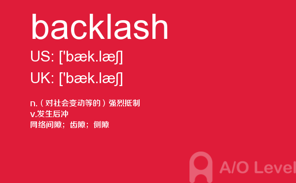 a-level(general certificate of education advanced level ),英国高中课程,是英国全民课程体系,是英国普通中等教育证书考试高级水平课程,也是英国学生的大学入学考试课程。今天alevel考试网小编给大家带来的alevel考试单词backlash的详细介绍。希望大家能够认真的阅读。如果您想了解高考完新加坡a水准,a水准考试要求,香港大学alevel成绩申请,新加坡a水准等关于a-level考试的相关资讯,请继续浏览并关注课窝a/o-level考试网。