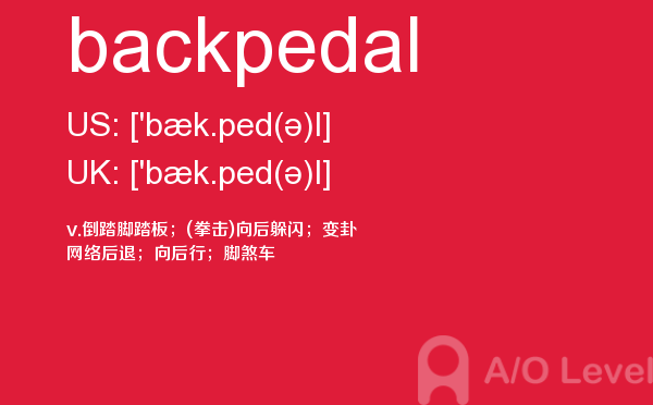 在a-level备考的过程中,想要冲刺到a-level写作的高分,相信大家都应该会知道,除了需要掌握a-level写作的一些技巧之外,优化文章中的词汇和句型也是冲刺高分的关键所在。也就是说,只有充分掌握了语法知识,才能让我们的的文章更为丰富形象。除了a-level写作,在a-level其他方面同学们也需要了解,下面课窝a/o-level考试网小编给大家带来a-level单词backpedal的介绍。如果您想了解英国alevel官网,alevel培训费用,alevel双语教材,alevel数学真题下载等关于a-level考试的相关资讯,请继续浏览并关注课窝a/o-level考试网。