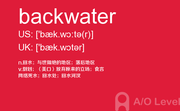 英国、加拿大、爱尔兰、澳大利亚、新西兰、新加坡等英语国家没有统一的大学入学标准,虽然它们都认可a-level证书,但是各所大学、各个专业对学生学过哪几门a-level课程以及成绩都有不同的要求。所以怎样选择课程并没有一个唯一的答案。对于如何选课的问题要根据具体情况而定。这些在你的a-level考试中都不是重要的,重要的是a-level成绩,a-level成绩取决于a-level词汇量,那么今天小编给大家带来a-level考试重点词汇backwater的全面解析。如果您想了解alevel英语,什么是alevel考试,alevel数学和ap数学,国内alevel培训等关于a-level考试的相关资讯,请继续浏览并关注课窝a/o-level考试网。