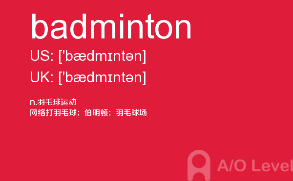 就读于国内学校的学生, 在申请英国学校时需要提交英国a-level考试成绩。很多考生因此英国a-level考试搞得头疼,放松一下,跟着a/o-level考试网来看看英国留学资讯吧!今天课窝a/o-level考试网小编给大家带来a-level考试重点词汇badminton的全解,对你肯定有帮助。如果您想了解alevel考试局比较,alevel课程物理,alevel真题搜索,alevel成绩网上查询等关于a-level考试的相关资讯,请继续浏览并关注课窝a/o-level考试网。