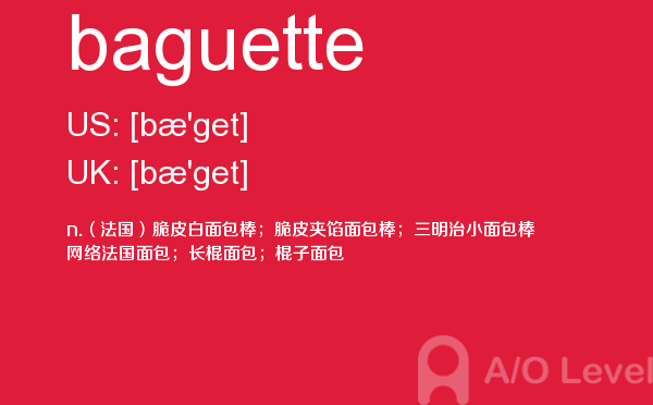 英国留学考试a-level考试考什么?a-level考试题型一定要注意积累和总结。课窝a/o-level考试网小编每天会给大家带来a-level考试的相关资讯,今天带来a-level单词baguette的解析,希望大家认真的积累a-level考试词汇。如果您想了解alevel在线学习,alevel考试难度,了解alevel辅导,alevel国际高中等关于a-level考试的相关资讯,请继续浏览并关注课窝a/o-level考试网。