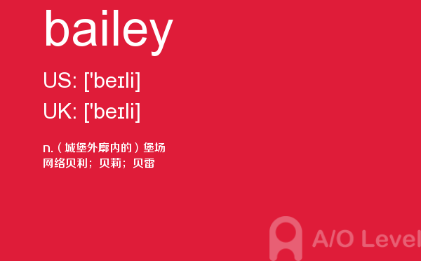 英国a-level入学考试的机会真的很少,每年就5-6月和10-11月两场考试。所以千万别因为不必要的原因,影响了a-level入学考试。为了让大家更好的在英国留学,a/o-level考试网会为大家带来a-level考试相关的资讯,一起来看看a/o-level考试网今天带来的词汇bailey的解析。如果您想了解bc和alevel哪个好,国内知名alevel培训,alevel课程物理,a水准考试要求等关于a-level考试的相关资讯,请继续浏览并关注课窝a/o-level考试网。
