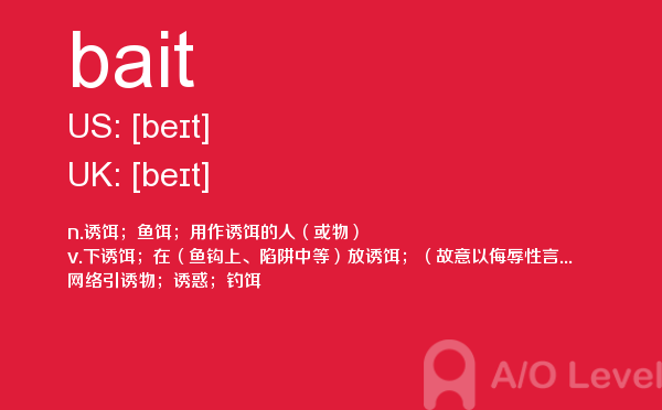 为了有a-level考试高分,很多童靴都参加英国高中课程a-level考试前都会做很多a-level考试真题。a-level考试备考要有一定的方法,课窝a/o-level考试网每天都会给大家带来a-level考试资讯,a-level考试备考相关的内容,今天课窝a/o-level考试网小编给大家带来关于a-level单词bait的详细介绍。如果您想了解alevel成绩查询,alevel课程可以申请留学新加坡吗,alevel考试大纲,alevel课程价格等关于a-level考试的相关资讯,请继续浏览并关注课窝a/o-level考试网。
