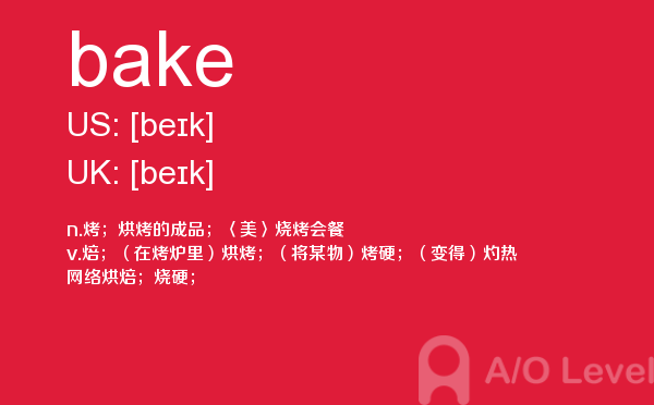 a-level 的考试将由所属的考试委员会分别于每年5-6月和10-11月在全球统一组织,成绩分别在8月和次年2月公布。关于a-level考试时间的具体内容,alevel考试网前面详细介绍过,大家可以查找alevel考试网前面的a-level考试资讯,alevel考试网每天会更新大量的alevel考试资讯,本篇要给大家介绍a-level单词bake的全面介绍。如果您想了解alevel考试地点,alevel中文,出国留学alevel成绩培训,a水准考试预科班等关于a-level考试的相关资讯,请继续浏览并关注课窝a/o-level考试网。