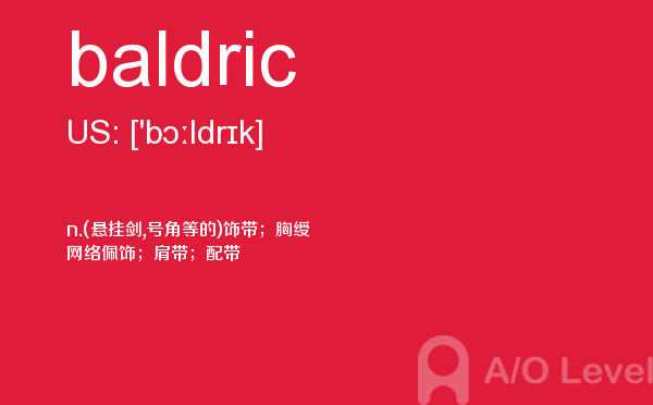 a-level的成绩分为a、b、c、d、e、u六个等级,a为最优,e为通过,u为不及格。如果学生对某门课的成绩不满意,可以选择重考,最终成绩以最好的一次为准。那么a-level考试想要取得a-level高分大家需要做到哪些呢?a/o-level考试网给大家带来的很多a-level考试经验,alevel考试技巧等等,想要考好a-level考试,不仅要知道这些,对于关于a-level考试的所有资讯都需要了解,最重点的是a-level词汇量的积累,今天a/o-level考试网就给大家带来的a-level的考试单词baldric的全面解析。如果您想了解alevel数学考试大纲,alevel考试网站,新加坡a水准试题,alevel考试考点等关于a-level考试的相关资讯,请继续浏览并关注课窝a/o-level考试网。