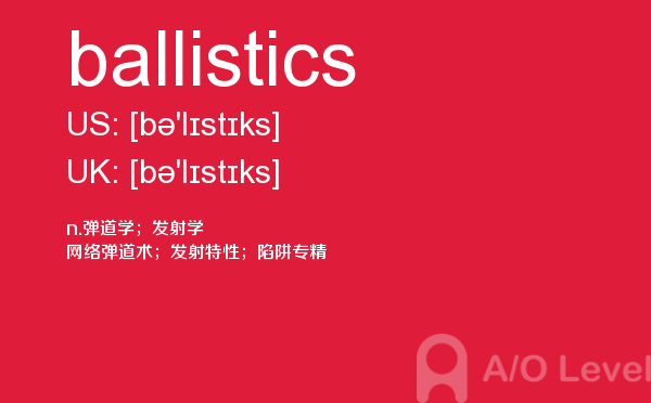 英国a-level学校,从教学质量上来看私立学校更占优势,大部分中国留学生也选择私立学校来读,不过一般都是提前一年来申请学校。中国目前也有20几所a-level学校,每年也同样有走进剑桥牛津等世界顶级大学的学生。所以在国外和在国内都可以选择a-level学校来学习。在前面关于a-level选校的问题已经详细介绍过,那么今天a/o-level考试网小编主要想介绍的是a-level重难点词汇ballistics。希望对大家有帮助。如果您想了解alevel经济学知识点,新加坡o水准a1多少分,alevel课程比较,alevel数学公式表等关于a-level考试的相关资讯,请继续浏览并关注课窝a/o-level考试网。