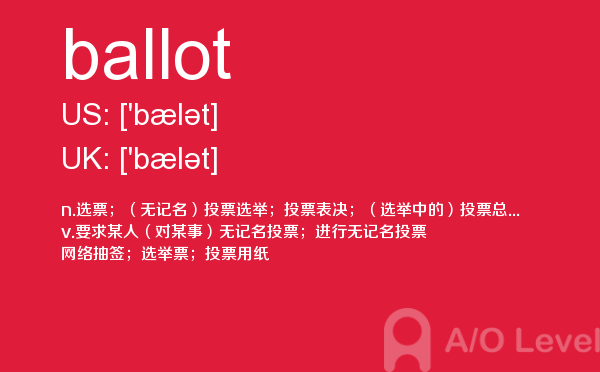 你知道考上a-level考试如何报名吗?最近很多人询问英国a-level考试有多难?到底要不要参加a-level考试培训?抛弃这些,a/o-level考试网老师告诉你,a-level单词最重要,今天带你学习ballot怎么用,希望你认真的学习。如果您想了解alevel网校,alevel国际高中课程,新加坡a水准考试试题,alevel中考等关于a-level考试的相关资讯,请继续浏览并关注课窝a/o-level考试网。
