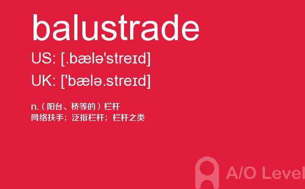 虽然英国a-level院校招生官常把“成绩不是决定录取与否的唯一因素”挂在嘴边,但不得不承认,a-level分数是学生优秀与否的有力证据,取得a-level成绩高分是肯定是优先考虑的。放松一下,先跟着a/o-level考试网来看看今天小编带来的是a-level单词balustrade的介绍。如果您想了解考alevel有年龄限制吗,alevel课程难吗,新加坡最好的a水准预科学校,上海alevel辅导等关于a-level考试的相关资讯,请继续浏览并关注课窝a/o-level考试网。