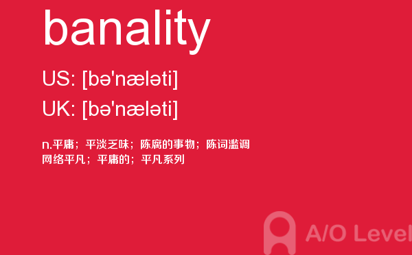 a-level考试报名须知是必须要懂得,这样在面对英国a-level入学考试的时候自己也知道应该怎么面对。为了提高考生们的a-level模拟考卷成绩,a/o-level考试网会经常给大家带来a-level考试资讯,下面就是今天课窝a/o-level考试网小编给大家讲解关于a-level考试词汇banality怎么用。如果您想了解牛津大学alevel,上海alevel国际学校,alevel数学评分标准,alevel考试大纲等关于a-level考试的相关资讯,请继续浏览并关注课窝a/o-level考试网。