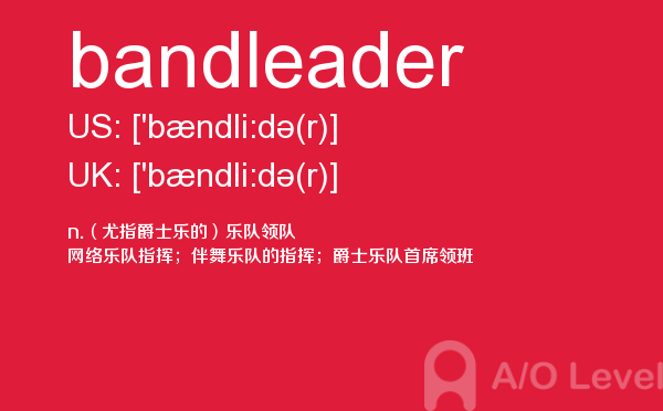 英国、加拿大、爱尔兰、澳大利亚、新西兰、新加坡等英语国家没有统一的大学入学标准,虽然它们都认可a-level证书,但是各所大学、各个专业对学生学过哪几门a-level课程以及成绩都有不同的要求。所以怎样选择课程并没有一个唯一的答案。对于如何选课的问题要根据具体情况而定。这些在你的a-level考试中都不是重要的,重要的是a-level成绩,a-level成绩取决于a-level词汇量,那么今天小编给大家带来a-level考试重点词汇bandleader的全面解析。如果您想了解alevel化学专业英语,alevel机经下载,查询alevel考试报名信息2018,英国alevel考试时间等关于a-level考试的相关资讯,请继续浏览并关注课窝a/o-level考试网。