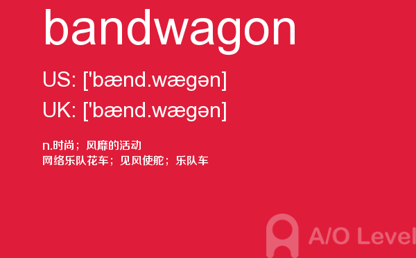 众多周知的英国a-level入学考试是进入英国院校的必经之路,所以我们自然不能小看,建议同学们能够加强a-level考试真题的练习,提前明确英国a-level考试报名的具体信息。为了提高考生们的英国a-level考试成绩,a/o-level考试网小编会每天给大家更新a-level留学资讯和alevel考试资讯,今天带来的是关于a-level考试词汇的单词全解,下面带你学习bandwagon的用法。如果您想了解alevel是什么,alevel考试官方网站,英国alevel教材,英国alevel学校等关于a-level考试的相关资讯,请继续浏览并关注课窝a/o-level考试网。