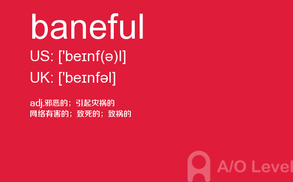 英国、加拿大、爱尔兰、澳大利亚、新西兰、新加坡等英语国家没有统一的大学入学标准,虽然它们都认可a-level证书,但是各所大学、各个专业对学生学过哪几门a-level课程以及成绩都有不同的要求。所以怎样选择课程并没有一个唯一的答案。对于如何选课的问题要根据具体情况而定。这些在你的a-level考试中都不是重要的,重要的是a-level成绩,a-level成绩取决于a-level词汇量,那么今天小编给大家带来a-level考试重点词汇baneful的全面解析。如果您想了解alevel官方网站,新加坡a水准预备班,alevel化学知识点,英国读alevel等关于a-level考试的相关资讯,请继续浏览并关注课窝a/o-level考试网。