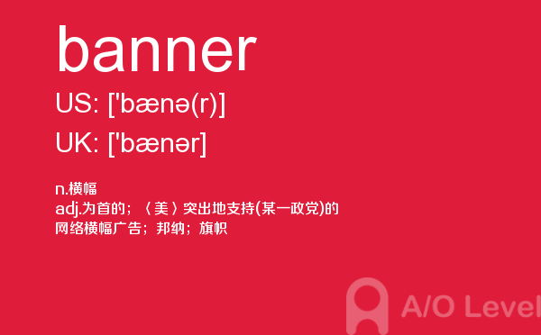 英国a-level入学考试的机会真的很少,每年就5-6月和10-11月两场考试。所以千万别因为不必要的原因,影响了a-level入学考试。为了让大家更好的在英国留学,a/o-level考试网会为大家带来a-level考试相关的资讯,一起来看看a/o-level考试网今天带来的词汇banner的解析。如果您想了解bc和alevel哪个好,国内知名alevel培训,alevel课程物理,a水准考试要求等关于a-level考试的相关资讯,请继续浏览并关注课窝a/o-level考试网。