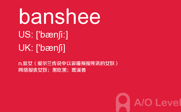 现在很多人来咨询a-level考试录取率,英国a-level考试题库的家长也依然不减,而考生们则更关心a-level教材以及a-level考试培训课程是什么样的。a/o-level考试网都会解答您。今天小编带来a/o-level考试网的内容是关于a-level词汇的banshee单词的详细介绍。如果您想了解alevel经济学答题技巧,剑桥alevel多少分是a,申请英国alevel高中,a水准考试预备班等关于a-level考试的相关资讯,请继续浏览并关注课窝a/o-level考试网。