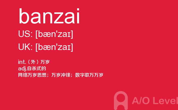 英国a-level考试报名费很好解决,那怎样才能达到a-level考试词汇量要求呢?别再纠结于a-level考试分数要求了,今天我们来一起看看a/o-level考试网今天带给你的a-level单词banzai的讲解。如果您想了解a水准考试难度,高考完新加坡a水准,奥克兰大学alevel,alevel考试科目体育等关于a-level考试的相关资讯,请继续浏览并关注课窝a/o-level考试网。