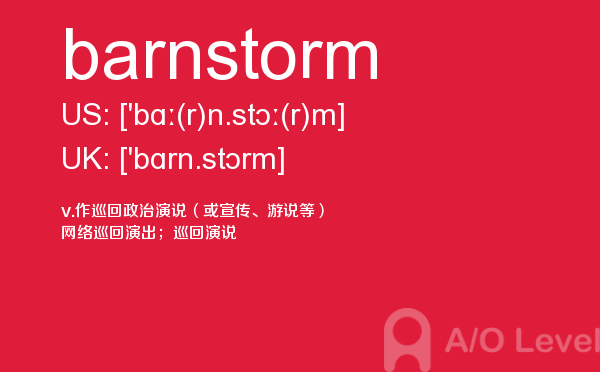在a-level备考的过程中,想要冲刺到a-level写作的高分,相信大家都应该会知道,除了需要掌握a-level写作的一些技巧之外,优化文章中的词汇和句型也是冲刺高分的关键所在。也就是说,只有充分掌握了语法知识,才能让我们的的文章更为丰富形象。除了a-level写作,在a-level其他方面同学们也需要了解,下面课窝a/o-level考试网小编给大家带来a-level单词barnstorm的介绍。如果您想了解alevel物理常备词汇,alevel官方网站,alevel数学公式,alevel培训学费等关于a-level考试的相关资讯,请继续浏览并关注课窝a/o-level考试网。