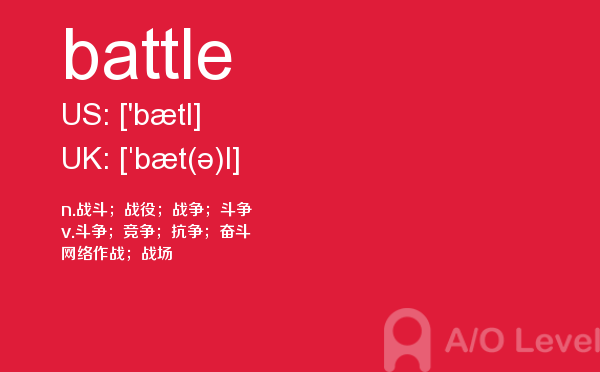英国留学对于留学成绩的比拼越来越激烈,申请英国院校留学的一大指标a-level考试分数要求也水涨船高.虽然成绩只是申请的一部分,但不得不说,好看的英国a-level成绩是学生是否优秀的证据。放松一下跟着a/o-level考试网来学习一下a-level考试词汇battle的应用。如果您想了解alevel评分标准,alevel官网,alevel网上报名,alevel和sat等关于a-level考试的相关资讯,请继续浏览并关注课窝a/o-level考试网。