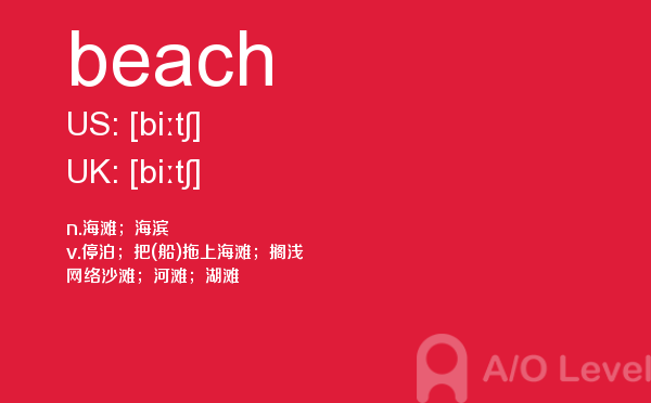 a-level课程证书被几乎所有英语授课的大学作为招收新生的入学标准。 在中国开设a-level课程旨在为中国学生提供进入国外大学的有效途径,具体目标为:培养在国内初高中成绩优秀的学生进入世界顶尖大学;培养在国内初高中成绩中等的学生进入世界一流大学;培养在国内初高中成绩一般的学生考取适合自己的大学。今天alevel考试网小编给大家详细解析a-level考试单词beach。如果您想了解alevel化学专业英语,alevel机经下载,查询alevel考试报名信息2018,英国alevel考试时间等关于a-level考试的相关资讯,请继续浏览并关注课窝a/o-level考试网。