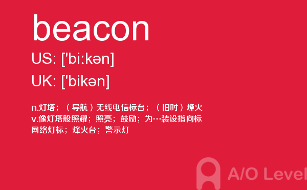 现在很多人来咨询a-level考试录取率,英国a-level考试题库的家长也依然不减,而考生们则更关心a-level教材以及a-level考试培训课程是什么样的。a/o-level考试网都会解答您。今天小编带来a/o-level考试网的内容是关于a-level词汇的beacon单词的详细介绍。如果您想了解新加坡留学a水准,alevel成绩有效期,alevel经济学章节总结,中国alevel等关于a-level考试的相关资讯,请继续浏览并关注课窝a/o-level考试网。