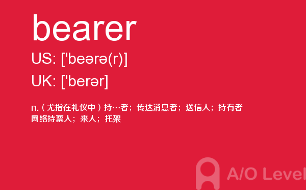 2.(票据、支票等的)持票人;送信人;搬运工人;抬棺人;轿夫;担架;运载工具