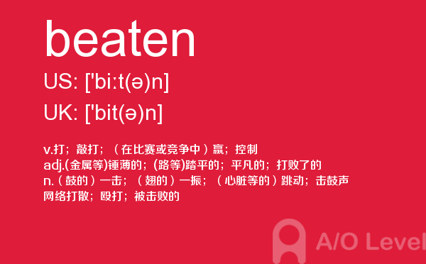 就读于国内学校的学生, 在申请英国学校时需要提交英国a-level考试成绩。很多考生因此英国a-level考试搞得头疼,放松一下,跟着a/o-level考试网来看看英国留学资讯吧!今天课窝a/o-level考试网小编给大家带来a-level考试重点词汇beaten的全解,对你肯定有帮助。如果您想了解alevel辅导上海,英国alevel课程是什么,在线alevel培训机构,alevel简介等关于a-level考试的相关资讯,请继续浏览并关注课窝a/o-level考试网。