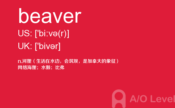 英国a-level考试是英国留学生去英国留学需要参加的考试,很多考生担心a-level考试分数要求高,英国a-level考试难度大,别担心,只要认真的学习a-level考试内容,小编相信大家一定能够考得a-level高分。今天a/o-level考试网给大家带来单词beaver的全面解析。如果您想了解alevel数学公式表,alevel申请,alevel学校,英国alevel学校排名等关于a-level考试的相关资讯,请继续浏览并关注课窝a/o-level考试网。