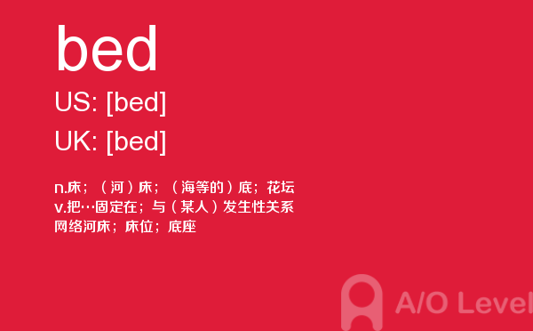 英国a-level考试报名费很好解决,那怎样才能达到a-level考试词汇量要求呢?别再纠结于a-level考试分数要求了,今天我们来一起看看a/o-level考试网今天带给你的a-level单词bed的讲解。如果您想了解alevel培训哪家好,alevel在线培训,alevel辅导上海,alevel考试日期等关于a-level考试的相关资讯,请继续浏览并关注课窝a/o-level考试网。