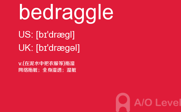 英国a-level入学考试的机会真的很少,每年就5-6月和10-11月两场考试。所以千万别因为不必要的原因,影响了a-level入学考试。为了让大家更好的在英国留学,a/o-level考试网会为大家带来a-level考试相关的资讯,一起来看看a/o-level考试网今天带来的词汇bedraggle的解析。如果您想了解alevel网上报名,alevel国际课程介绍,新加坡a水准学费,alevel范文等关于a-level考试的相关资讯,请继续浏览并关注课窝a/o-level考试网。
