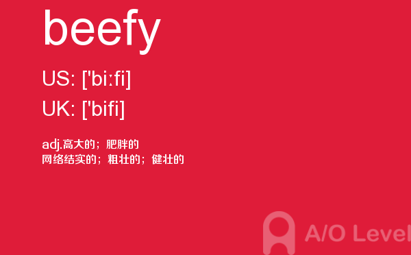 现在申请英国院校的中国孩子非常多,几乎每一个学生都在为一种叫做英国a-level的考试而努力着。a/o-level考试网老师为大家解析a-level考试重难点单词beefy,大家认真学习,会有帮助。如果您想了解alevel培训价格,中国alevel成绩申请国外名校,alevel中心哪里有,alevel作文思路等关于a-level考试的相关资讯,请继续浏览并关注课窝a/o-level考试网。