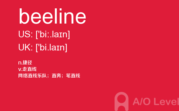 英国a-level学校,从教学质量上来看私立学校更占优势,大部分中国留学生也选择私立学校来读,不过一般都是提前一年来申请学校。中国目前也有20几所a-level学校,每年也同样有走进剑桥牛津等世界顶级大学的学生。所以在国外和在国内都可以选择a-level学校来学习。在前面关于a-level选校的问题已经详细介绍过,那么今天a/o-level考试网小编主要想介绍的是a-level重难点词汇beeline。希望对大家有帮助。如果您想了解alevel经济学大纲,英国高中alevel排名,alevel试卷,用alevel成绩申请大学等关于a-level考试的相关资讯,请继续浏览并关注课窝a/o-level考试网。