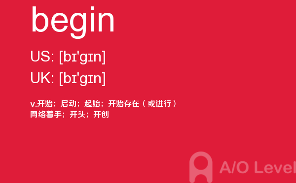 英国留学考试a-level考试考什么?a-level考试题型一定要注意积累和总结。课窝a/o-level考试网小编每天会给大家带来a-level考试的相关资讯,今天带来a-level单词begin的解析,希望大家认真的积累a-level考试词汇。如果您想了解alevel报名截止日期,alevel化学教材电子版,新加坡a水准报名条件,新加坡国立大学alevel等关于a-level考试的相关资讯,请继续浏览并关注课窝a/o-level考试网。