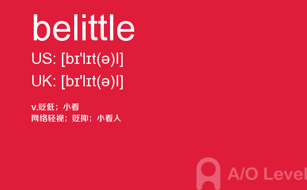 虽然英国a-level院校招生官常把“成绩不是决定录取与否的唯一因素”挂在嘴边,但不得不承认,a-level分数是学生优秀与否的有力证据,取得a-level成绩高分是肯定是优先考虑的。放松一下,先跟着a/o-level考试网来看看今天小编带来的是a-level单词belittle的介绍。如果您想了解a水准物理专业术语,alevel中文,alevel词汇表,alevel经济学真题等关于a-level考试的相关资讯,请继续浏览并关注课窝a/o-level考试网。