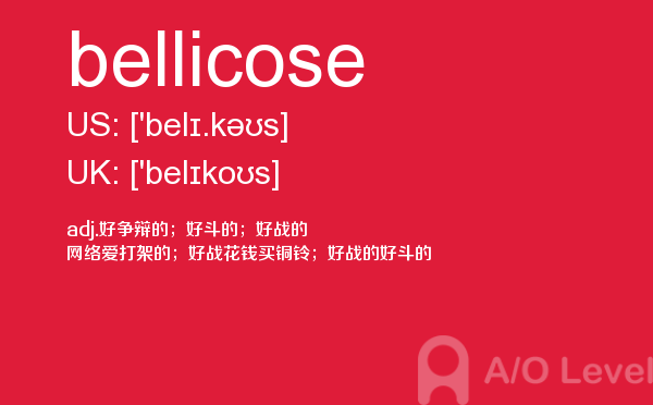 课窝a/o-level考试网上提供了许多信息可以供考生们参考,比如考生需要在此网站报名,打印准考证,或者搜寻与英国a-level考试内容相关的资料等等。考生如果想在短时间内,迅速掌握a-level考试资讯,就需要合理运用此网站的信息。今天带来的是a-level考试词汇之bellicose的详细介绍。如果您想了解新加坡a水准数学考试,alevel中文教材,alevel中国,alevel考试费用等关于a-level考试的相关资讯,请继续浏览并关注课窝a/o-level考试网。